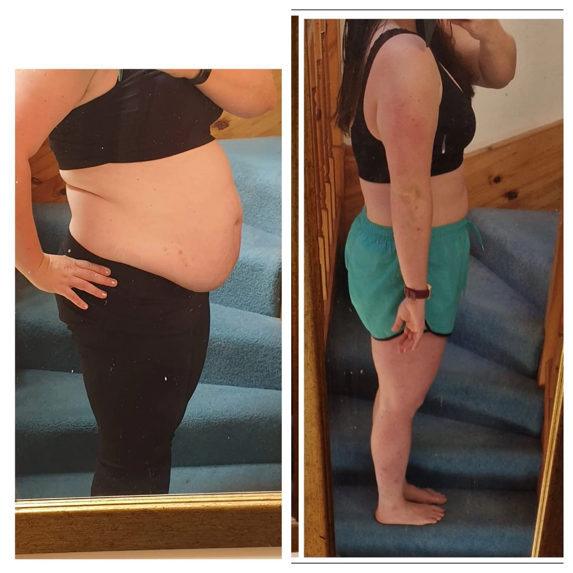“11 lbs down but omg the difference, I’m not fussed by the scales, I feel so much better and its such a nice feeling to be able to fit back into smaller clothes again”.
